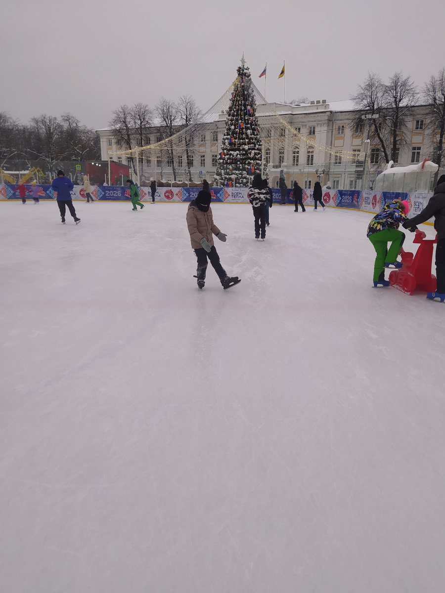 Каток в центре города в воскресенье уже стало нашей традицией. Катаемся сразу по два сеанса, в 12 и в 14 часов