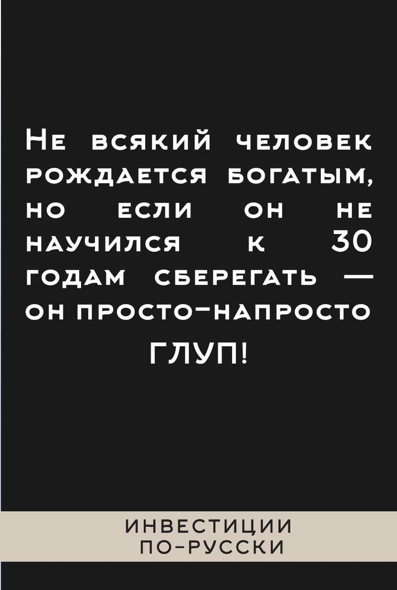 Не всякий человек рождается богатым, но если он не научился к 30 годам сберегать — он просто-напросто глуп