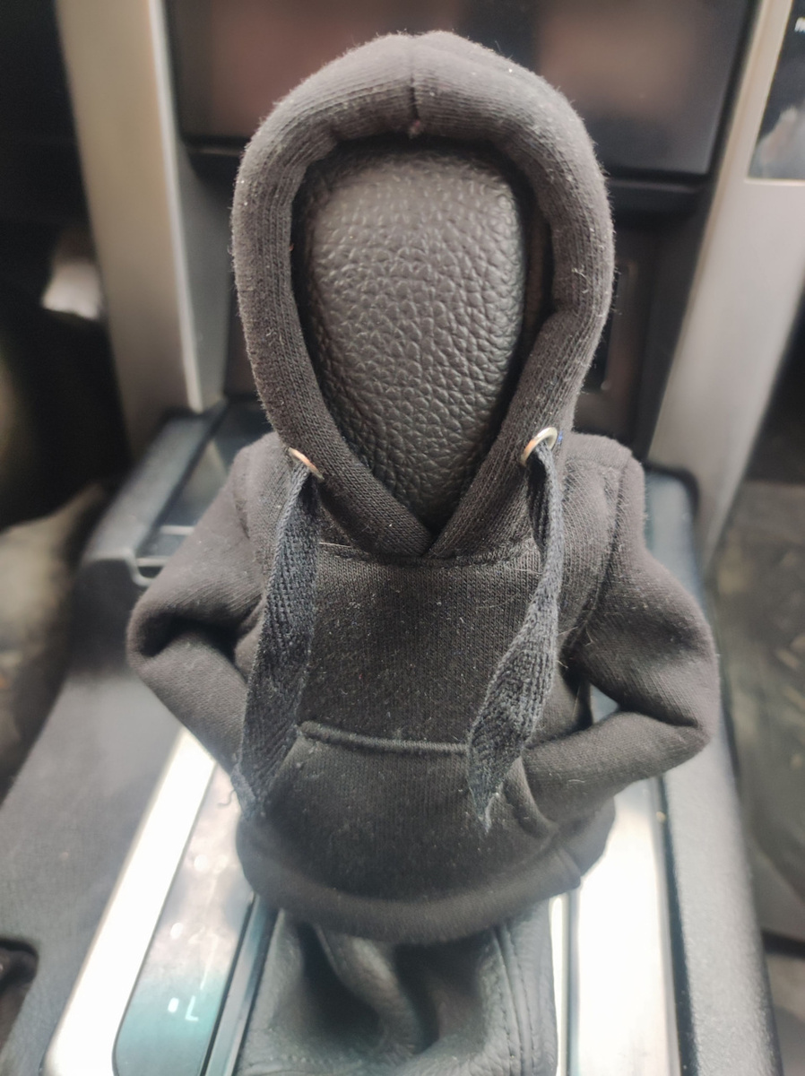 Это декоративный чехол, стилизованный под толстовку с капюшоном. Он надевается на ручку селектора АКПП, чтобы придать салону оригинальный и уютный вид. Ключевые моменты: Материал: Изготавливается в основном из мягких тканей, имитирующих текстиль одежды. Чаще всего — это хлопок, флис, велюр или микрофибра с начёсом (как у настоящего худи). Внутри может быть мягкий наполнитель (синтепон) для объёма.