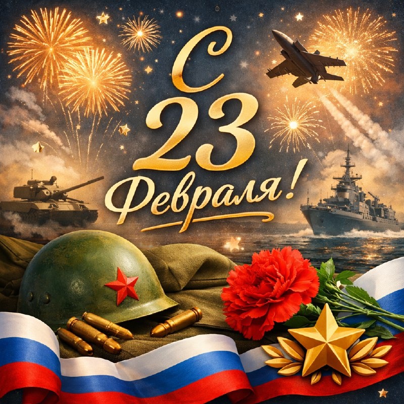 С 23 февраля! Пусть ваш дом будет полной чашей, а сердце — открытым для любви и добра. Желаю вам мира, достатка и душевного тепла.