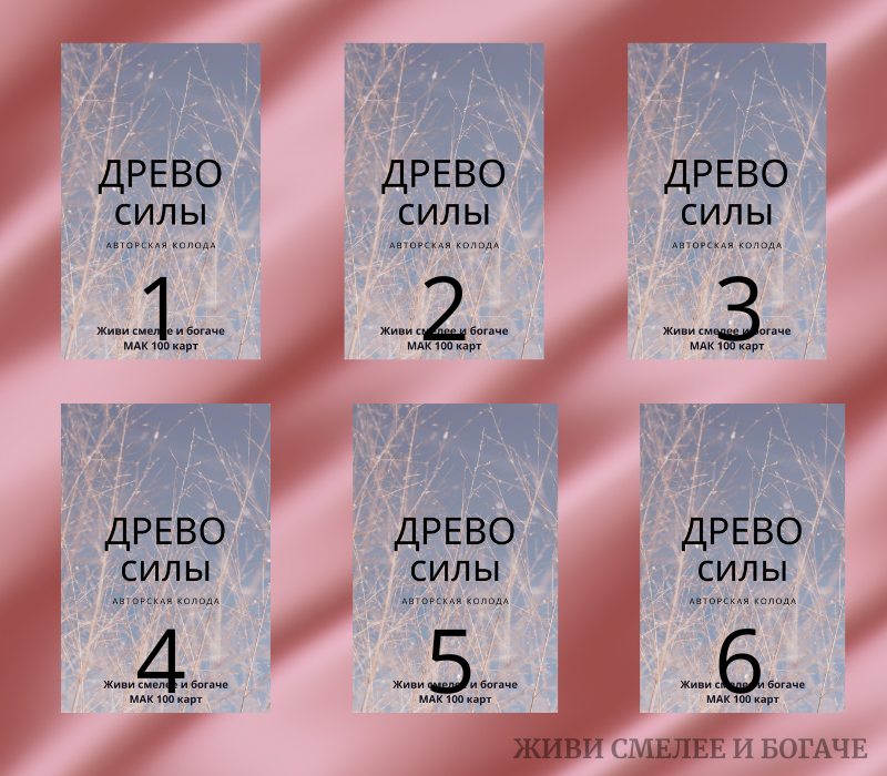 На каждой карте колоды «Древо Силы» — изображение дерева в разное время года, в разных состояниях. И текст-подсказка: название качества, которое либо уже является вашей опорой, либо просится, чтобы его «вырастили» в себе прямо сейчас.