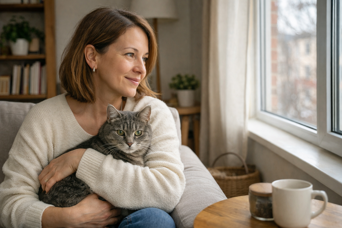 Дома её встретил кот — серый, с характером. В обычные дни он делает вид, что он главный в квартире и ему никто не нужен. Но в тот вечер он сел рядом. Не лез, не мяукал, не требовал внимания. Просто был рядом, как будто по расписанию: “поддержка человека”.