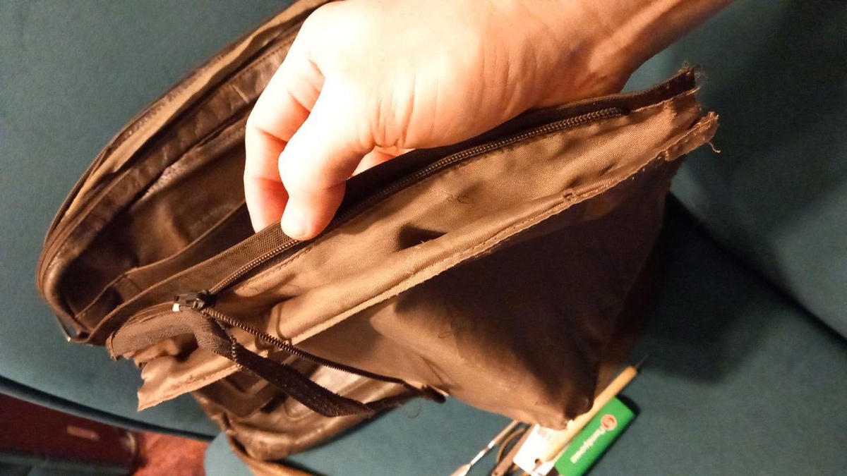 Очередной #ремонт — сумка Piquadro. Заменены ручки, молния на кармане.