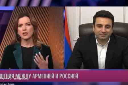 АрмИнфо. Председатель парламента Армении Ален Симонян выразил свое недоверие «риторике, тостам и лирике», присутствующим в российско-армянских отношениях, отметив, что интересы страны превыше всего «как это делалось сто раз в течение истории человечества». «Я думаю, что Россия, как и любая страна, действует согласно своим интересам. Если завтра этот интерес им накажет сделать какие-то шаги, то они не будут над этим задумываться». Об этом он заявил в интервью Екатерине Котрикадзе - главе информационной службы и ведущей оппозиционного российской власти и находящегося в эмиграции телеканала «Дождь». Говоря о своих впечатлениях о недавней поездки в Москву, Симонян не счел ее тяжелой. «Не было агрессии и вопросов, которые нельзя было обсуждать, а что касается прессы, то медии были намного агрессивней и это было странновато», отметил он. «Я думал, что то, что говорится на официальных встречах также озвучивается на официальных каналах, но оказалось, что официальные каналы намного жестче и тру