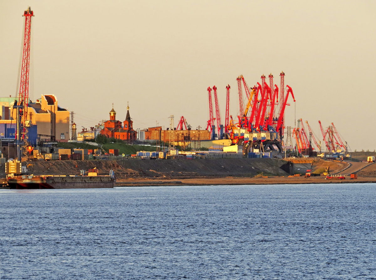 Дудинка стоит на Енисее, но её порт вполне морской, хотя и с грузооборотом около 4 миллионов тонн совсем небольшой в масштабах России, и даже на Ледовитом океане уступает в разы Мурманску и Сабетте. 3/4 его оборота приходится на летнюю навигацию, но специально строившиеся под здешние условия "Арктические экспрессы" (кадр ниже) "Норникеля" и атомные ледоколы "Таймыр" и "Вайгач" с караванами судов появляются тут и зимой. Для товаров народного потребления порт Дудинки скорее речной - их везут по Енисею. Морские суда же, за редчайшим исключением, курсируют в Мурманск - ведь из Талнаха через Норильск производственные цепочки ведут в Мончегорск. Более того, "Норильский Никель" понемногу становится "Кольским Никелем": судоходство на СевМорПути отлажено так, что хозяевам выгоднее возить с Таймыра необогащённую (то есть - более объёмную и тяжёлую) руду, чем обогащать её на месте. А оборудование можно доставлять и напрямую из Китая - порт Дудинки международный с 2012 года, когда на умирающей Иг
