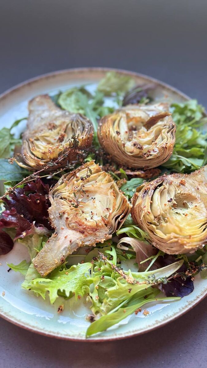 ? Спасибо Испании за доступность этого продукта круглый год. Существует много способов приготовления, но один из них нравится мне больше всего (спасибо, моим друзьям шеф поварам на ФБ 🙏. Это они меня научили). Делюсь: ∙ Очищаю артишок от внешних грубых листьев. Ножку не отрезаю, чищу от верхнего слоя и готовлю вместе с бутоном. Каждый артишок сразу натираю половинкой лимона, чтобы не темнел. ∙ Довожу до кипения воду, добавляю сок половины лимона и артишоки, варю 10–15 минут (в зависимости от размера). ∙ На сковороде растапливаю топлёное масло, добавляю веточку розмарина, щепотку пири-пири (или хлопья чили), сушёный чеснок и соль. ∙ Разрезаю артишок пополам вдоль, промакиваю бумажным полотенцем и обжариваю срезом вниз на сильном огне по 2 минуты с каждой стороны до золотистой корочки. Чем полезен артишок? Содержит цинарин и другие кофеилхиновые кислоты (1,3-дикофеилхиновая, хлорогеновая) стимулируют секрецию желчи и её отток из желчного пузыря. Одна средняя головка артишока содер