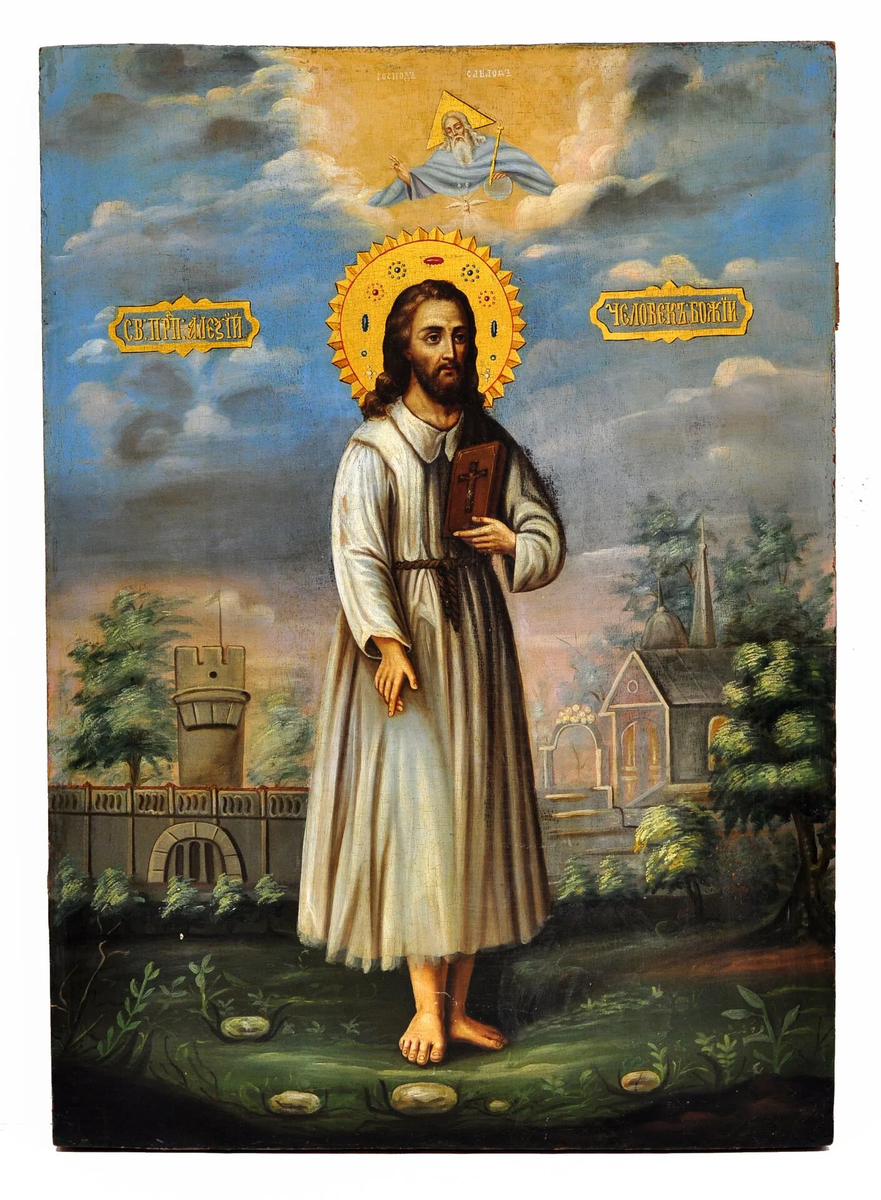 Родился в знатной римской семье: отец — сенатор Евфимиан, мать — благочестивая Аглаида. Родители отличались милосердием: ежедневно кормили сирот, вдов, путников и нищих. По молитвам Аглаиды Господь даровал им сына; младенца назвали Алексий (греч. «защитник»). В зрелом возрасте родители выбрали ему невесту царской крови.