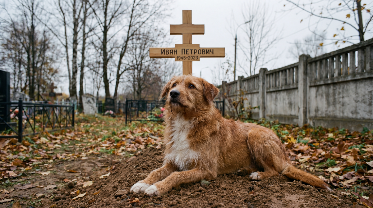 Кладбище встретило тишиной. Небо затянуто тучами, ветер холодный, пронизывающий. Я почти бежала между крестов, ноги скользили на мокрой земле. Дружок лежал на том же месте. Поднял голову, когда я подошла. Глаза ввалились, шерсть торчала клочьями, рёбра проступали через кожу.