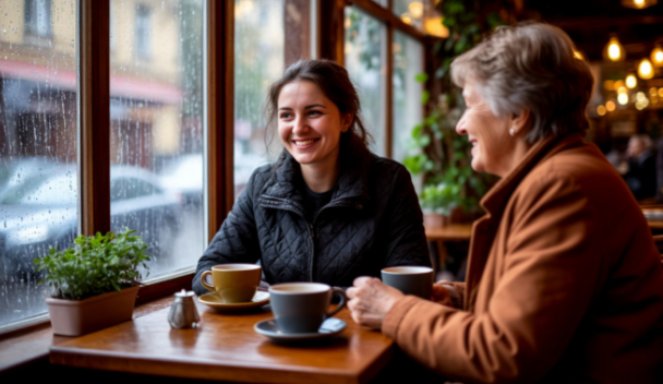 Они стояли так, глядя на дождь за окном, и обе понимали: иногда случайные встречи меняют всю жизнь.