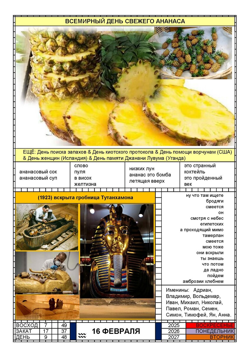 КАЛЕНДАРЬ 16 ФЕВРАЛЯ