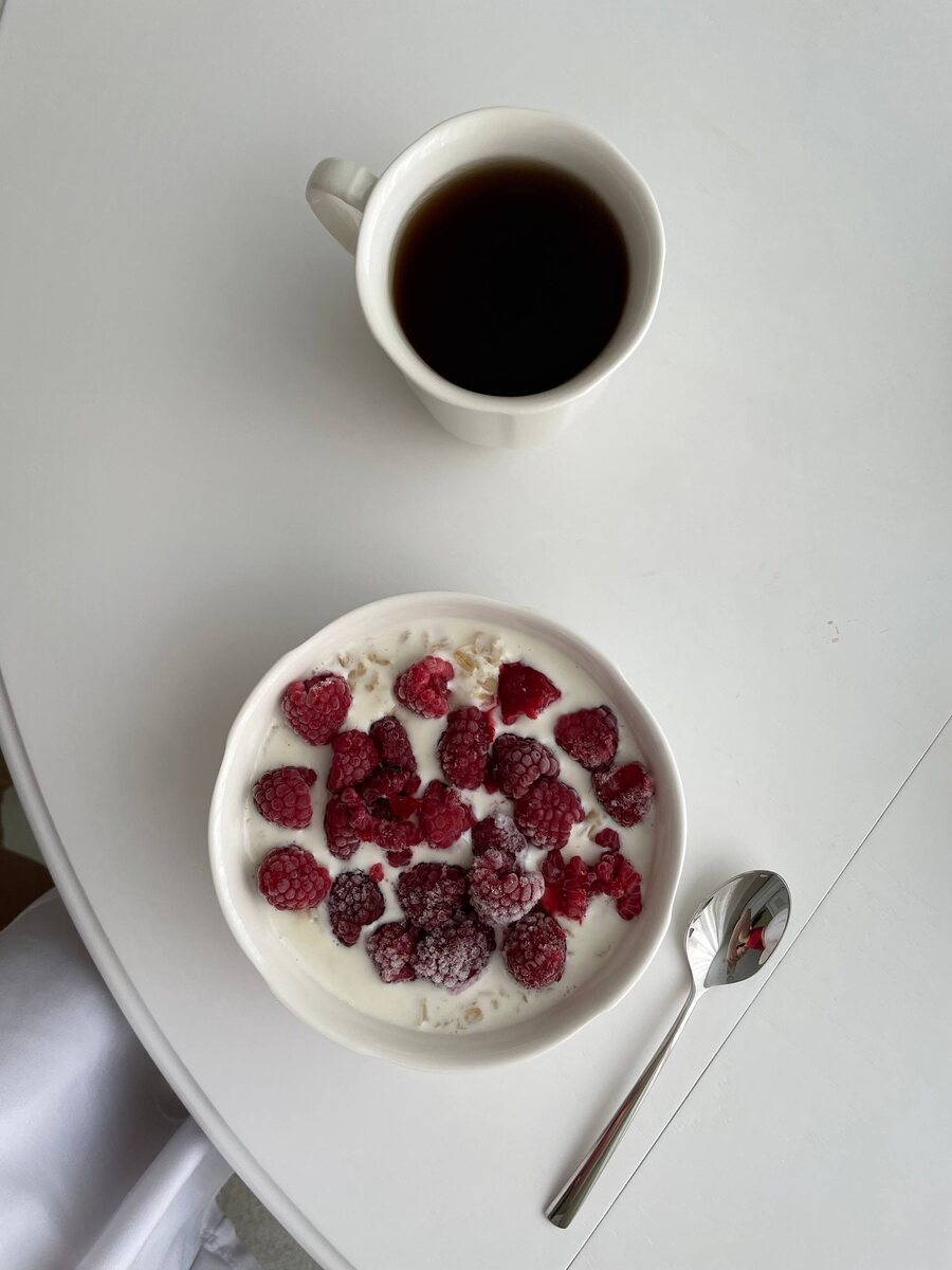 и овощами, брусничная калитка с чаем; на ужин макаронам с 2 яйцами, греческий йогурт и чай с 2 шоколадными пряниками