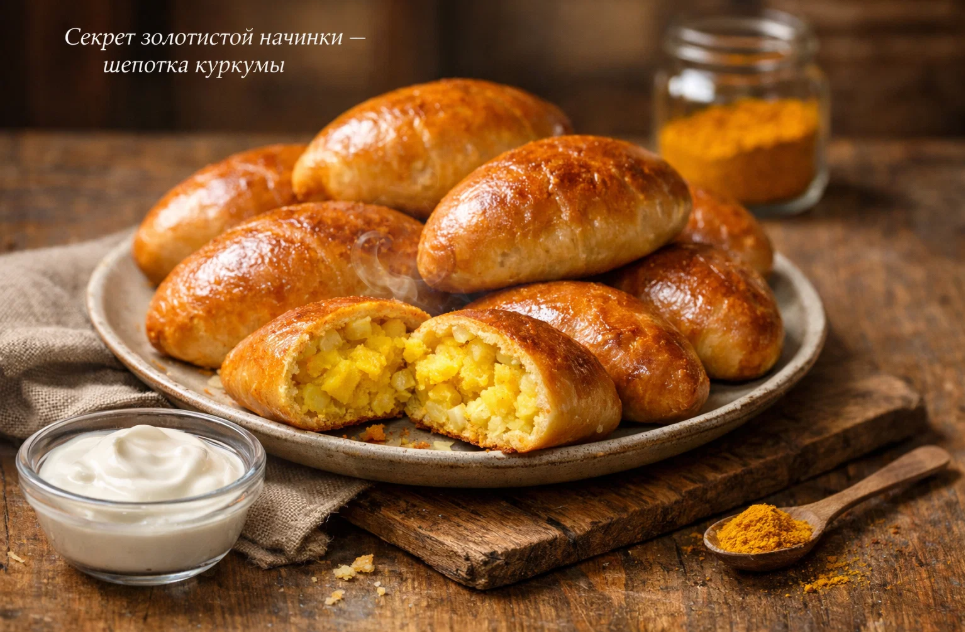 Однажды я решила немного поэкспериментировать с привычной картофельной начинкой. Не помню точно, что именно натолкнуло меня на эту мысль — то ли прочитанная где-то заметка о специях, то ли просто взгляд, случайно упавший на баночку с куркумой, которая давно стояла на полке без дела. Я добавила буквально щепотку этой ярко-жёлтой приправы в размятую картошку, и результат превзошёл все ожидания. Начинка приобрела такой аппетитный золотистый оттенок, что пирожки стали выглядеть совершенно по-новому — словно их испекла не я на своей обычной кухне, а профессиональный повар в дорогом ресторане.