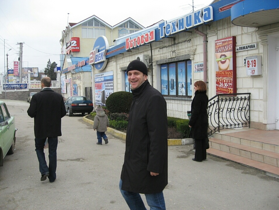 На фото впереди иду я, слева папина машина, идём садиться в машину или в легендарный севастопольский магазин "21 век", самый крутой на то время, за покупкой бытовой техники, фотографирует сестра.