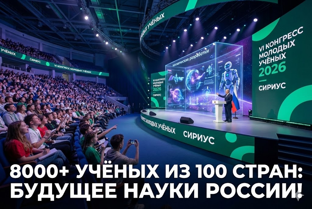 25-27 ноября 2026 года федеральная территория «Сириус» примет VI Конгресс молодых ученых — крупнейшую площадку для диалога науки и технологий. Президент Путин назвал конгресс одним из самых значимых событий страны. Рассказываем родителям, почему это важно для будущего детей За 5 лет Конгресс молодых ученых вырос в 3 раза по участникам и в 4 раза по количеству стран — в 2025 году приехали более 8 тысяч человек из 100 государств. Мероприятие проходит в рамках Десятилетия науки и технологий и входит в нацпроект «Молодежь и дети». Это не просто конференция — это место, где школьники, студенты и молодые ученые находят единомышленников и получают импульс для научной карьеры. Площадка для диалога передовой науки, государственной власти и бизнеса, которая задает векторы научно-технологического развития России. Форматы разнообразные: дискуссии и лекции, научные битвы, мастер-классы, кинопоказы, интеллектуальные игры. Темы 2026 года: космические разработки, искусственный интеллект, микроэлектрон