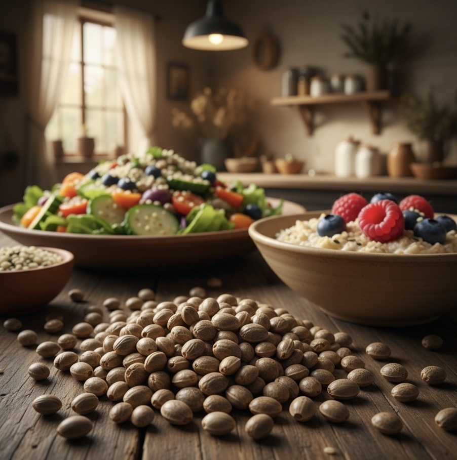 Тем не менее, как и с любым продуктом, важно соблюдать умеренность. Чрезмерное потребление семян может привести к избытку калорий и нежелательным эффектам. Рекомендуется начинать с маленьких порций (1–2 столовые ложки в день) и постепенно увеличивать количество по мере адаптации организма.