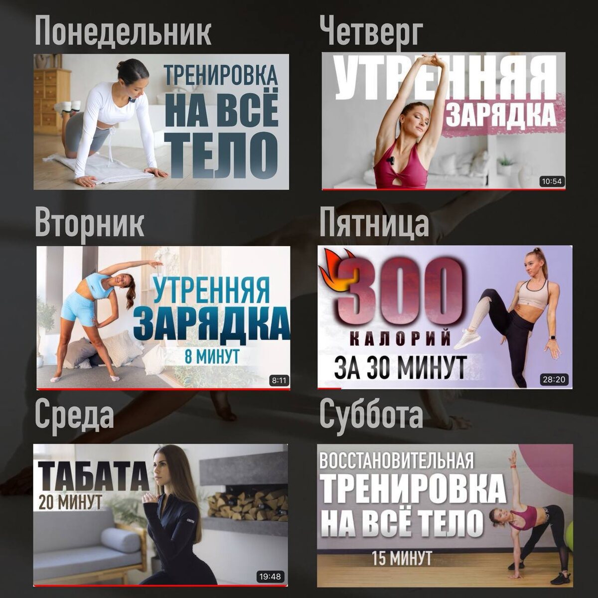 💪 На этой неделе предлагаем активно тренироваться: табата, круговые тренировки + конечно же добавим вашу любимую зарядку от Дарьи Котельниковой! В субботу обязательно выполним восстановительную тренировку на всё тело — после интенсивной недели это то, что нужно 💆♀️ Как вам план? Ставьте 🔥, если будете тренироваться с нами на этой неделе!