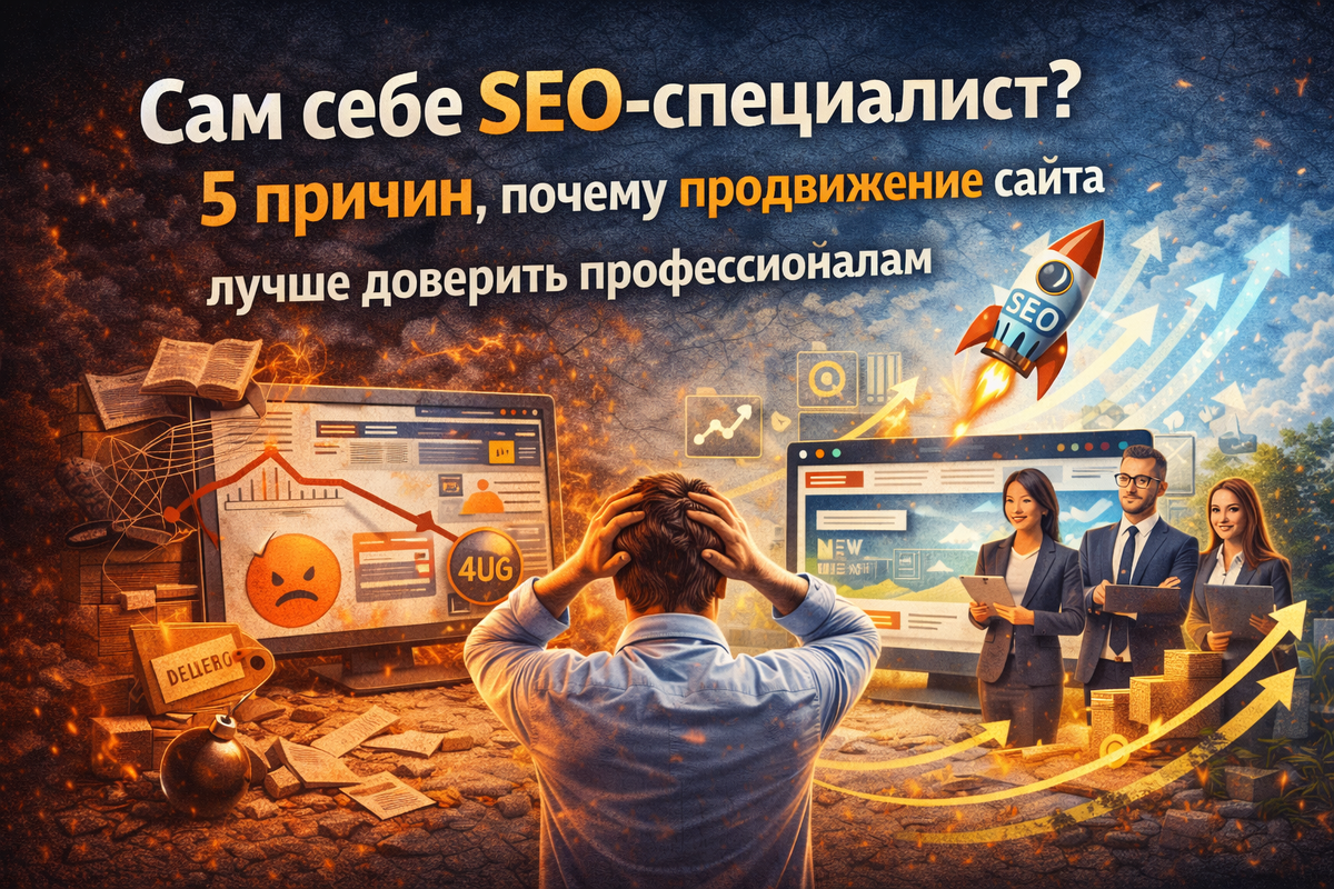 «А что там сложного? Посмотрю пару видео, почитаю статьи и сам продвину сайт». Логика понятна. Сэкономить бюджет. Разобраться самому. Контролировать процесс. Но SEO - это не набор лайфхаков. Это системная работа, где ошибка может стоить месяцев времени и сотен тысяч рублей. Разберём 5 причин, почему самостоятельное продвижение чаще всего обходится дороже. Чтобы продвинуть сайт, нужно понимать: Это не «поставить ключевые слова». Поисковые алгоритмы Google и Яндекс обновляются регулярно. Только Google выпускает тысячи изменений в год. Игнорирование этих факторов приводит к просадкам, которые потом сложно восстановить. Один человек без опыта редко может закрыть все направления качественно. Самая опасная проблема - не отсутствие действий, а неправильные действия. Типичные ошибки самостоятельного продвижения: Результат - фильтры поисковиков или падение позиций. Восстановление после санкций может занять от 3 до 12 месяцев. И это уже реальные потери