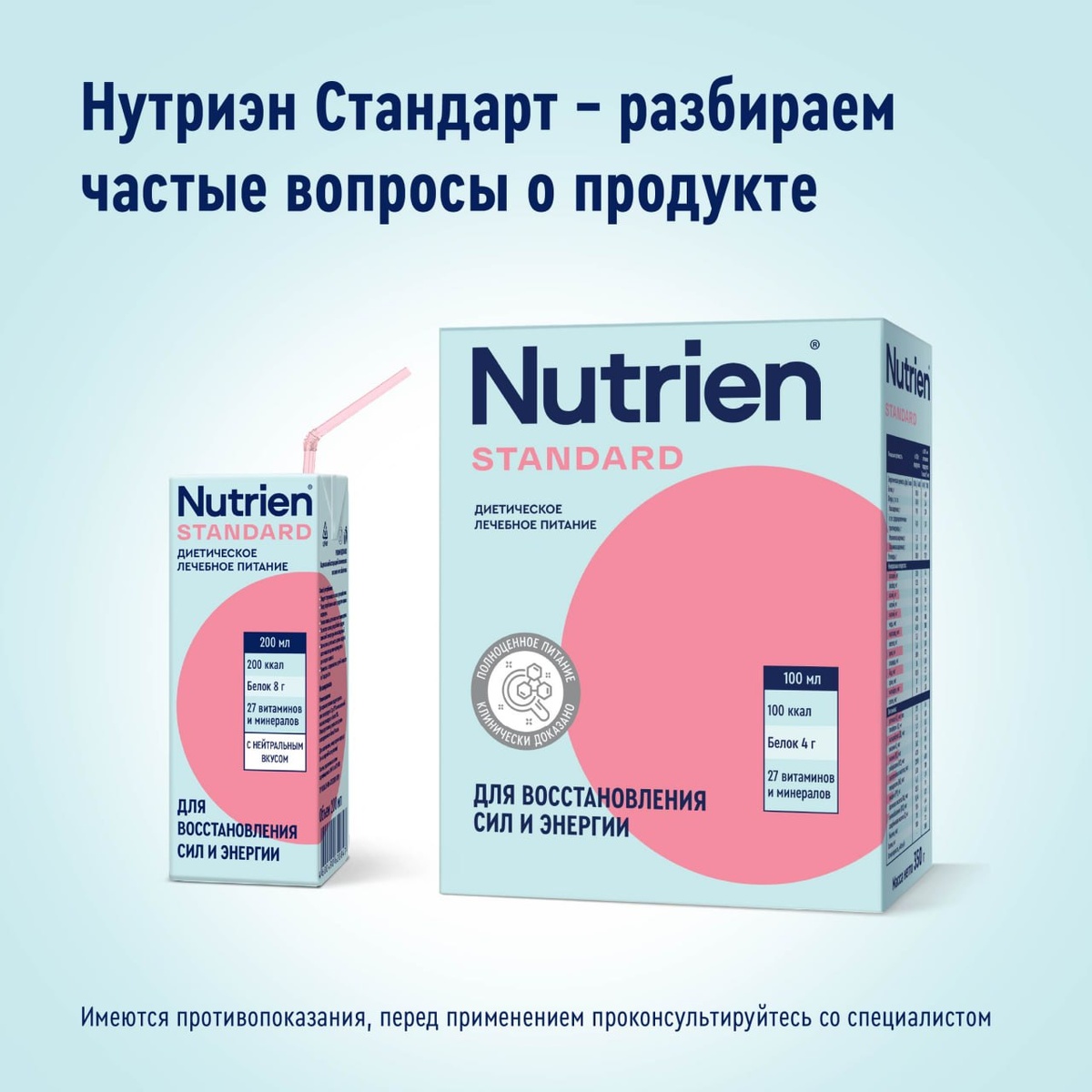 💙💙💙 Нутриэн Стандарт – разбираем частые вопросы о продукте Нутриэн Стандарт – это специализированная питательная смесь, предназначенная для восполнения энергии и поддержки организма в период лечения и реабилитации. Она применяется при признаках или угрозе развития нутритивной недостаточности: при потере массы тела, истощении (кахексии), на этапах предоперационной подготовки и послеоперационного восстановления, а также в качестве дополнительного питания во время химио- и радиотерапии. В этом материале мы ответим на несколько распространенных вопросов о продукте. 🥛 Способен ли Нутриэн Стандарт служить полноценной заменой привычной пище? Да, способен. В ситуациях, когда прием обычной пищи затруднен, употребление 5–7 порций (по 200 мл каждая) смеси Нутриэн Стандарт полностью удовлетворяет суточную потребность организма в питательных веществах и калориях. 🥛 Как сделать прием питания более комфортным при воспалении слизистой рта и пищевода (мукозите)? Для снижения болезненных ощущ