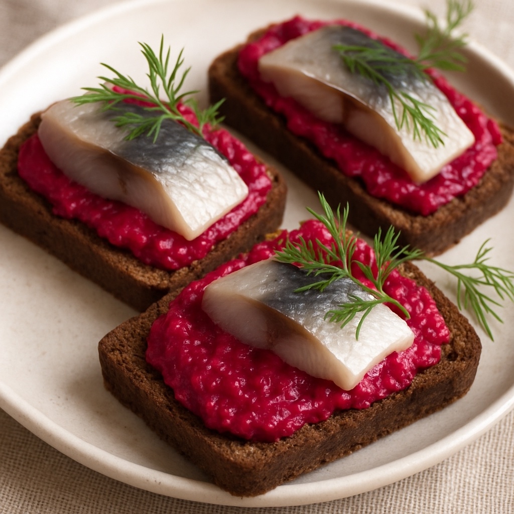 Бутерброды с малосольной сельдью и свекольной намазкой 🐟✨