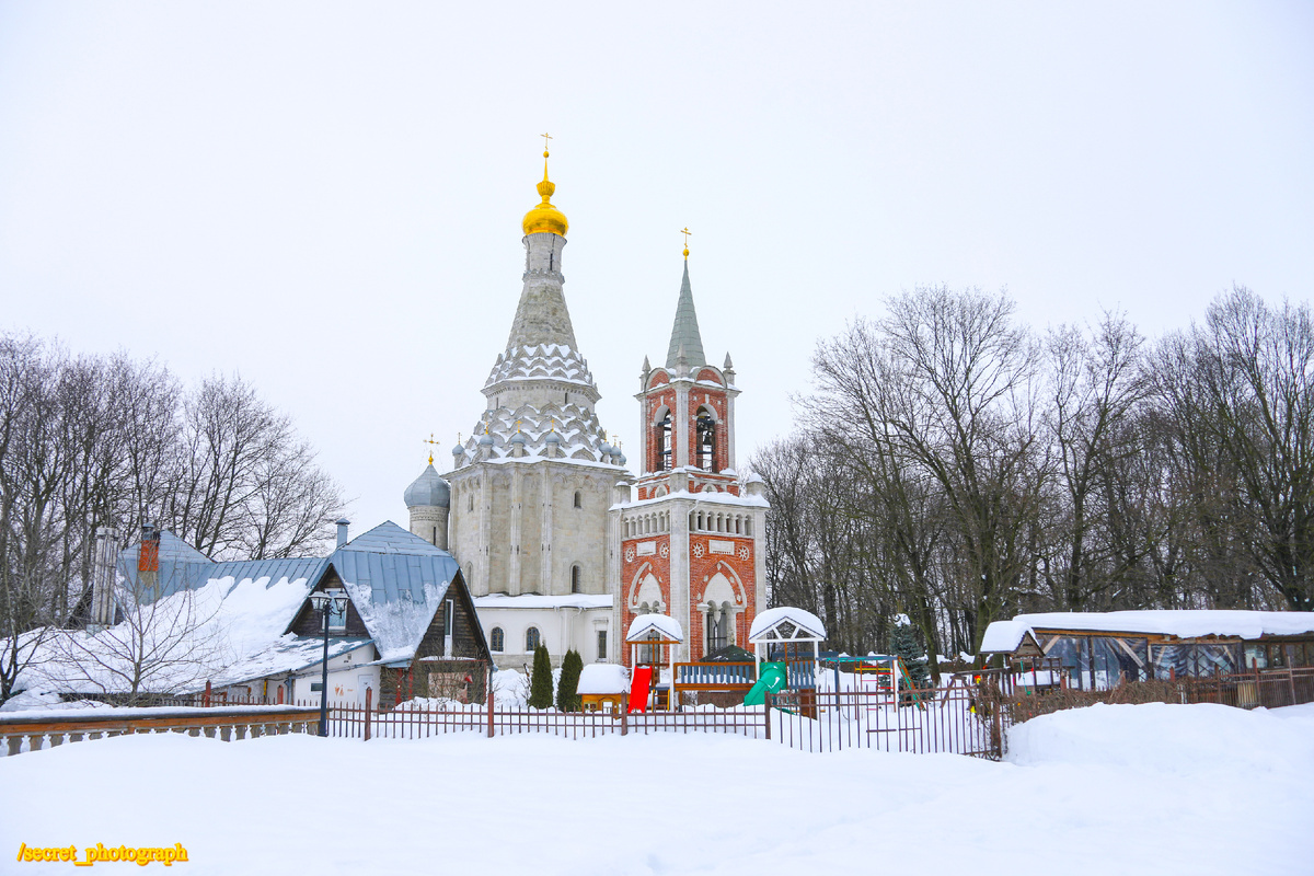 Этакое братство эпох и царских фамилий, союз великих князей, Всероссийских императоров и простых селян. Шатровый храм дониконовских времен и псевдоготическая колокольня, возведенная в 1830-е годы благодаря вкладу дочери графа Орлова.