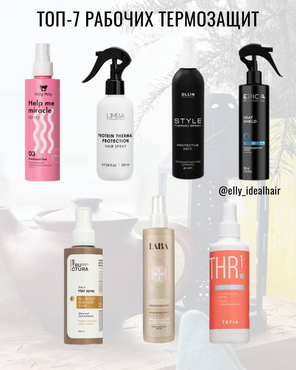 ! 💕 Составила для вас шикарную подборку термозащит до 1000 рублей, которые реально работают😱 О важности термозащиты при укладке феном я уже подробно писала вот тут. Если всё еще сомневаетесь — бегом перечитывать! А я вам ТОП-7 рабочих продуктов, которые можно купить без вреда для бюджета. ❤️ Чем они так хороши? ✅ Защищают волосы от перегрева при сушке феном. ✅ Облегчают расчесывание. ✅ Придают зеркальный блеск. ✅ Не утяжеляют и не склеивают волосы. ✅ Имеют приличный объем — хватит очень надолго ❤️ А вот и сам список: 🤍HOLLY POLLY help me miracle spray 🤍 LIMBA COSMETICS protein 🤍 OLLIN PROFESSIONAL style 🤍 EPICA PROFESSIONAL heat shield 🤍 ULTIMATE STRUCTURA shine and heat 🤍 LABÁ hair etiquette 🤍 TEFIA style.up heat protection Делитесь постом с подружкой 💕И пишите в комментариях: что уже пробовали из этого списка? А какая термозащита сейчас в вашем арсенале?