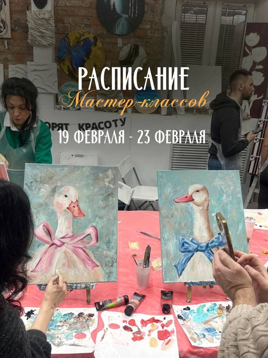 …. Так много разнообразия в творческих мастер-классах на неделе! Здесь и наши хедлайнеры, которые так полюбились вам наши любимые, ну и те техники, которые проходят реже , но от этого менее эффектными не становятся Что же ждет вас на этой неделе ? Интерьерная живопись сусальным золотом/текстурной пастой, винная арт-вечеринка, пастель, акварель и конечного же арт-свидание для ваш и вашей любви 🖤🫶🏼 Листай карусель 🎠 зови друзей , любимых и близких и ждем в гости раскрашивать эти серые будни 💌 записаться на занятие - просто написать нам