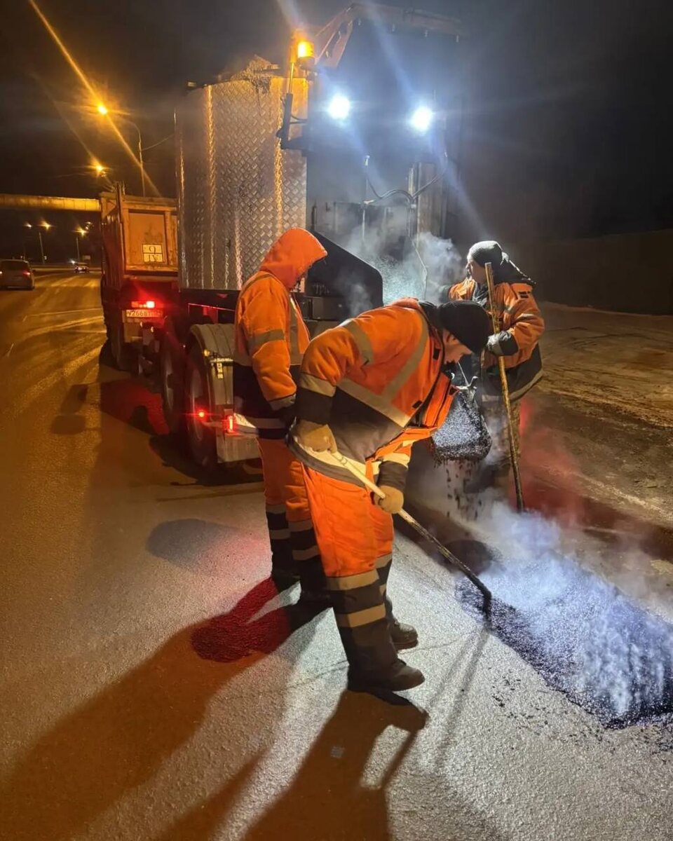 🚧 В Красноярске в феврале заделывают ямы на дорогах литым асфальтом