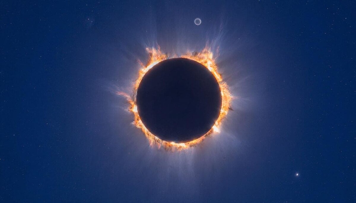 Огненное кольцо вокруг затмившей Солнце Луны будет таким ярким, что не позволит увидеть ближайшие к ним звёзды во время затмения 17 февраля, сообщили ТАСС в Московском планетарии. Пик затмения наступит в 15:13 по московскому времени — максимальная фаза составит 0,963 и продлится 2 минуты 19 секунд. Явление в целом займёт 4,5 часа. Если Луна закрывает собой только часть солнечного диска, то затмение называют частным. Если оказывается скрыт весь диск — полным. Если закрывается его центральная часть, оставляя кольцо — кольцеобразным. При кольцеобразном затмении яркий ободок Солнца не позволяет увидеть ни корону, ни звёзды вблизи Солнца.