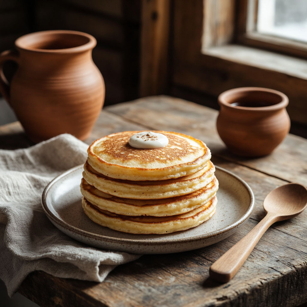Настоящие - это живые. Пышные. С пористой структурой. С хрустящими краями и мягкой, почти кремовой серединой. Потому что весь секрет - не в муке. Не в яйцах. И даже не в технике. Секрет - в простокваше. Это продукт, который веками был основой русской выпечки. Он даёт тесту глубину вкуса, мягкость и ту самую текстуру, которую невозможно получить на молоке. Сегодня расскажу, как готовить оладьи так, как их готовили в настоящих русских домах. Для подачи: В профессиональной кухне мы понимаем, что текстура - это химия.