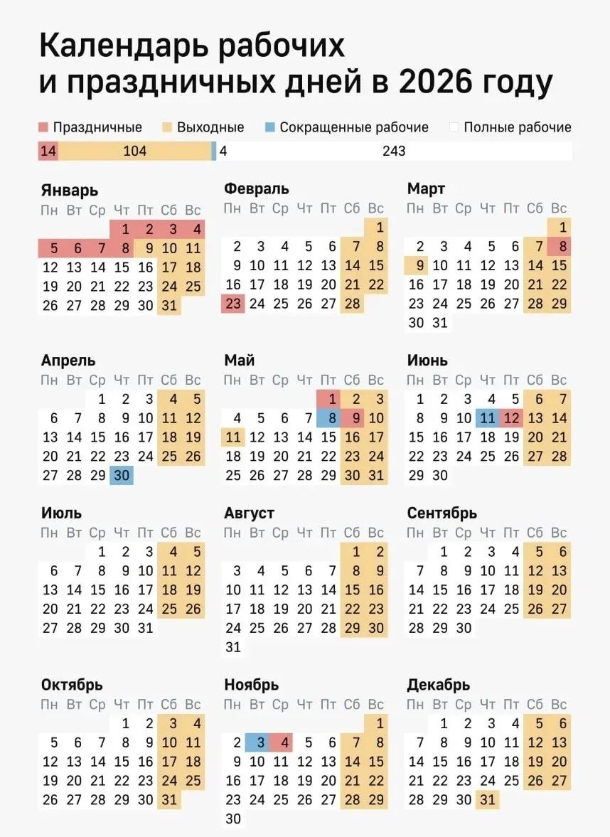 📆 Следующие выходные в России будут трёхдневными, а последняя неделя зимы — всего четырёхдневной