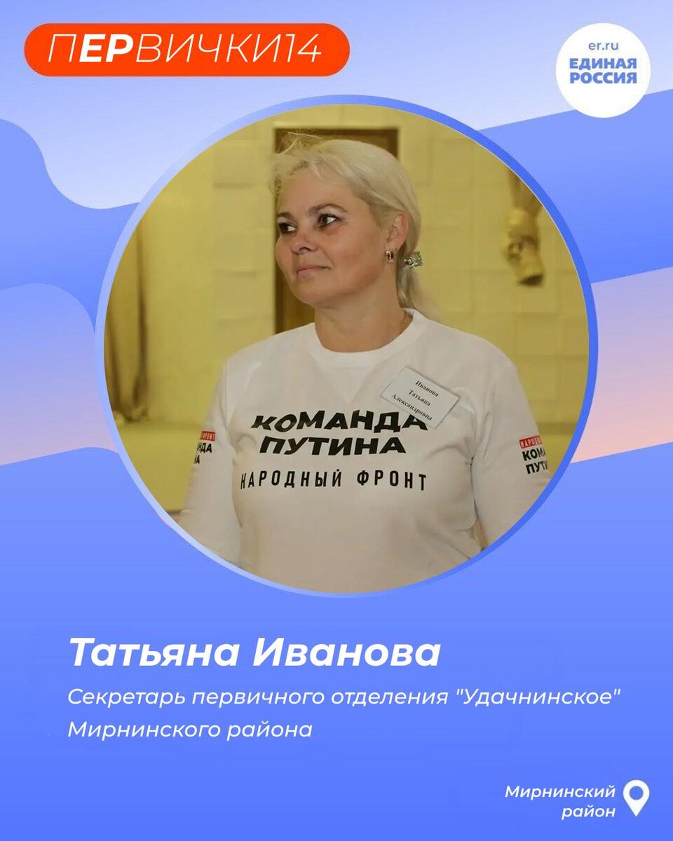 🐻❄️ Секретарем первичного отделения «Удачнинское» Мирнинского района с 2019 года является Татьяна Иванова