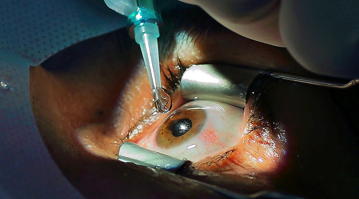 Оно устанавливается внутри глаза и мягко удерживает зрачок в нужном положении. Пациент ничего не чувствует — ни давления, ни боли. Веки удерживает маленький фиксатор. Он не причиняет боли, но не даёт закрыть глаз.