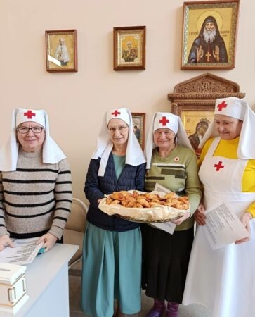 Сейчас в сестричестве 13 сестёр. Трудятся в гуманитарном центре на Софийском приходе, отшивают носилки, пятиточечники для бойцов специальной военной операции, формируют аптечки. Осуществляют патронаж подопечных на дому. А ещё — на постоянной основе несут служение в Казанском госпитале для ветеранов воин.