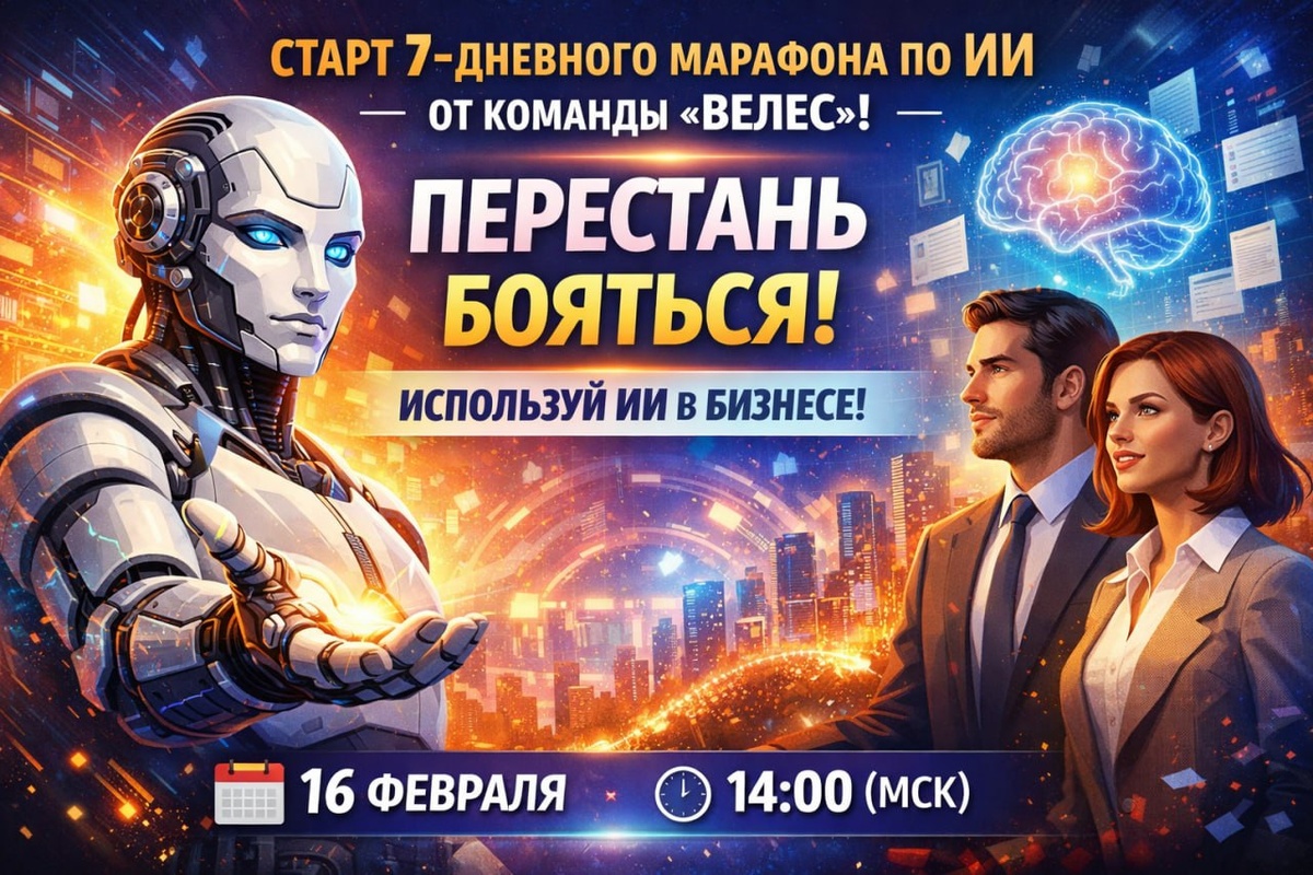 🤖 СТАРТ 7-ДНЕВНОГО МАРАФОНА ПО ИИ ОТ КОМАНДЫ «ВЕЛЕС»: КАК ПЕРЕСТАТЬ БОЯТЬСЯ И НАЧАТЬ ИСПОЛЬЗОВАТЬ ИСКУССТВЕННЫЙ ИНТЕЛЛЕКТ В БИЗНЕСЕ