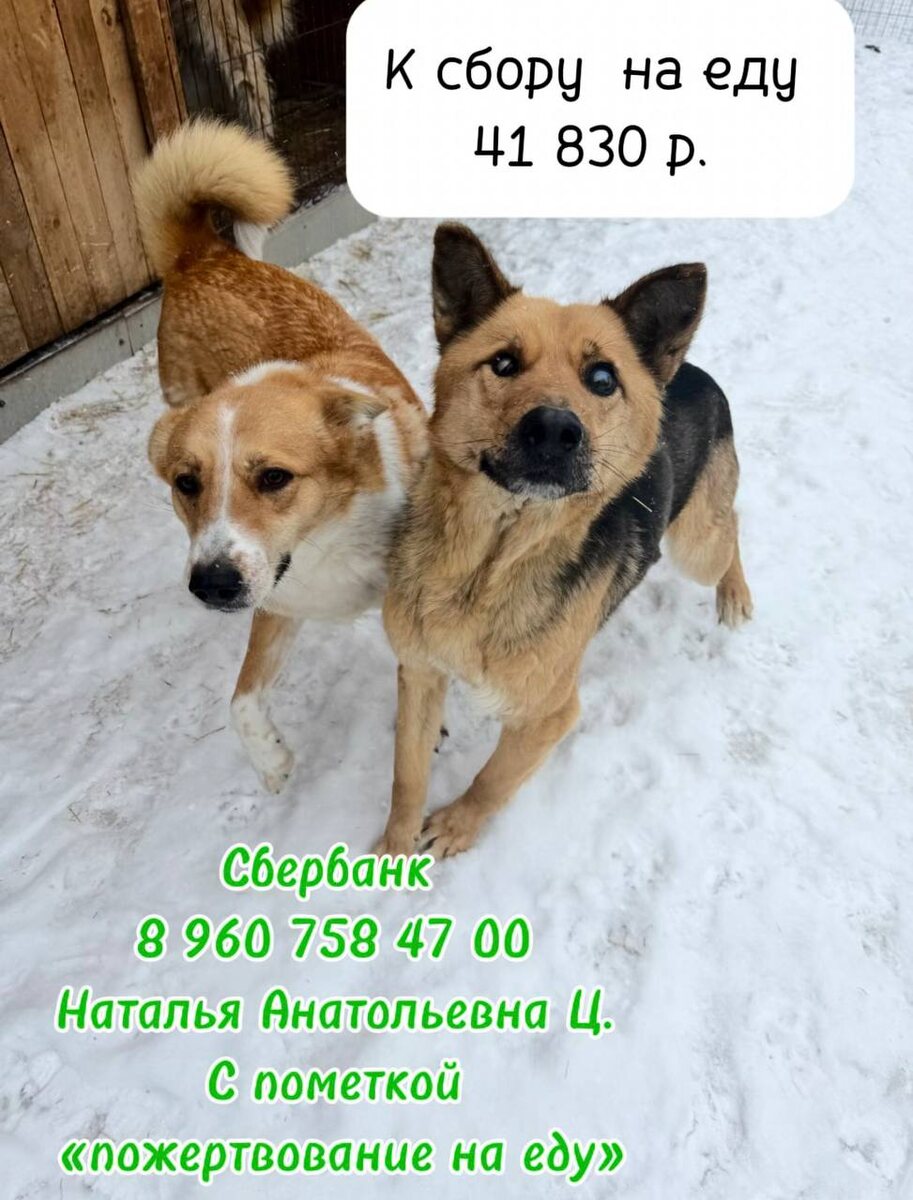 41 830 рублей🙏 Ежемесячно приюту требуется 55000 рублей на закуп мясного и крупы, чтобы обеспечить всех 90 жителей приюта тини, что жизненно необходимо- питание! Приют НЕ финансирует государство, все то, что мы имеем-это помощь неравнодушных людей🙏 Мы очень просим вас помочь закрыть сбор на еду🙏🙏🙏🫶 Отчет за 13.02-15.02 прикладываем Любая сумма в 10,50,100,300,500₽ - это помощь 🙏 💵 Помощь можно оказать по номеру: Сбербанк 8 960 758 47 00 Наталья Анатольевна Ц. С пометкой «пожертвование на еду»