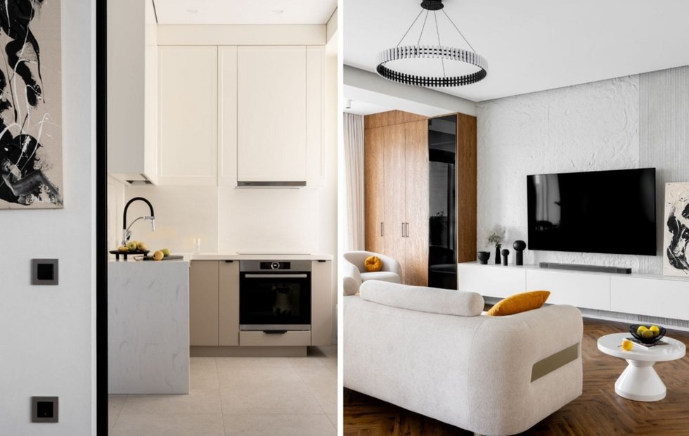 Дизайнер Данара Байтурсынова создала светлый и лаконичный интерьер для молодой современной девушки с сыном. Фишкой проекта стали натуральные текстуры, спокойная цветовая палитра и продуманные решения по освещению, которые создают особенную атмосферу для жителей квартиры. Интерьер получился максимально облегченный, при этом он подчеркивает статус хозяев.