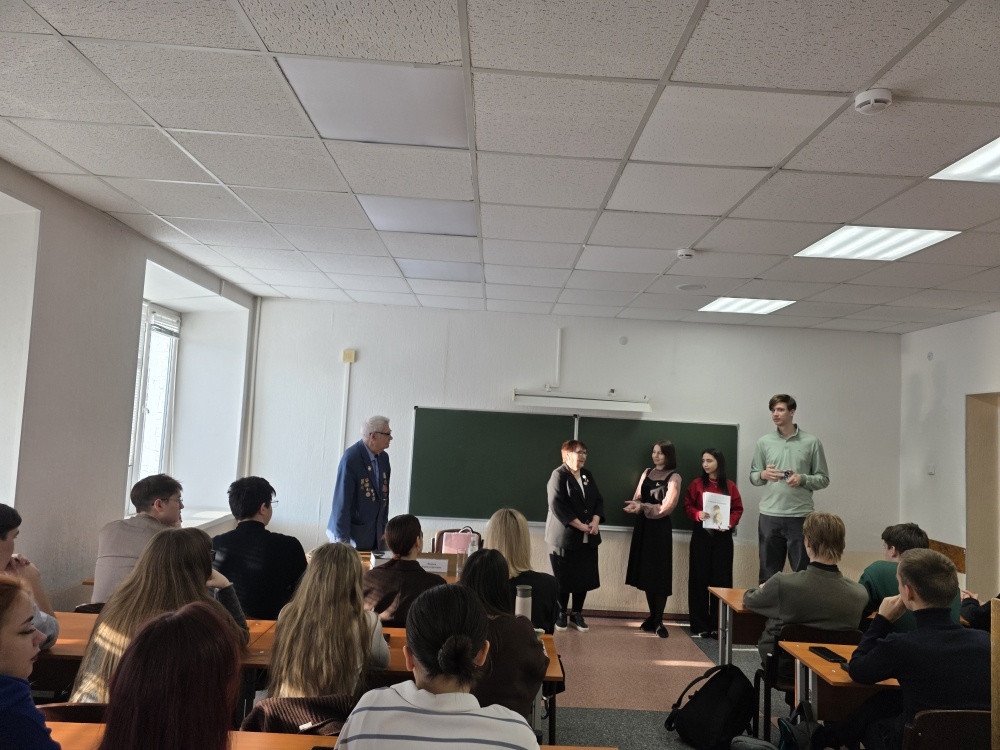 13 февраля прошли традиционные встречи с членами комиссии по патриотическому воспитанию молодежи Городской общественной организации ветеранов войны, труда, вооруженных сил и правоохранительных органов. Перед слушателями выступили: Альбина Абрамовна Голохвастова–ветеран педагогического труда, отличник народного просвещения; Юрий Сергеевич Иванов– ветеран труда, отличник социалистического соревнования Министерства транспортного строительства; Николай Николаевич Конев – ветеран нефтегазовой промышленности. Встречи студентов с ветеранами труда и представителями поколения «дети войны» — это не просто дань традиции, а важнейший элемент воспитательного процесса и формирования гражданской идентичности. Такие мероприятия выполняют несколько ключевых функций: сохранение исторической памяти, передача жизненного и профессионального опыта, формирование и развитие у молодежи нравственных ориентиров, а также поддержание эмоциональной связи поколений. Вдохновившись встречей с Альбиной Абрамовной в про