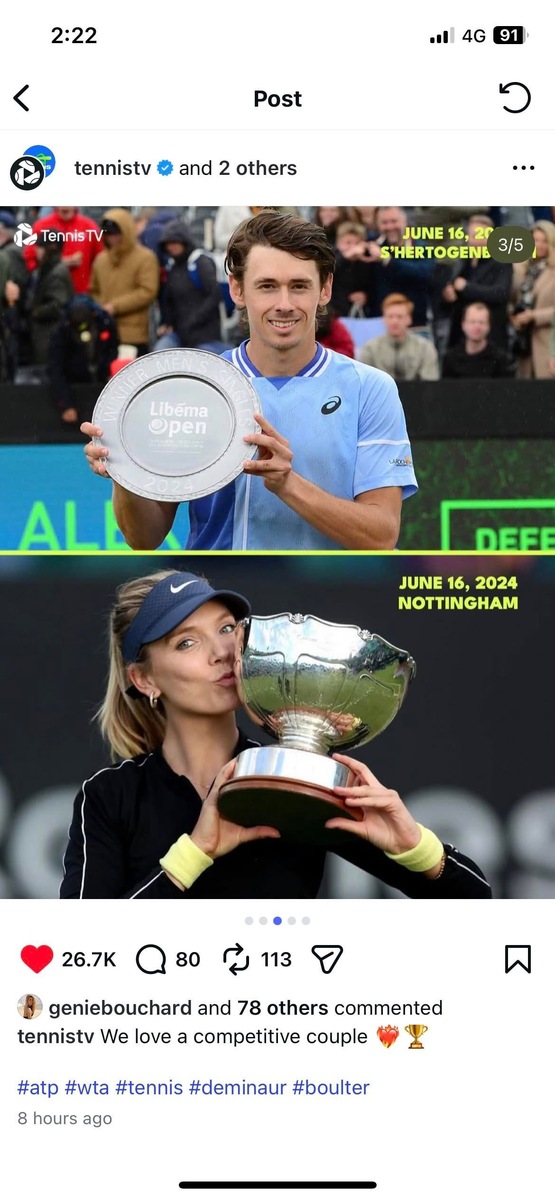 И так уже 3 раза! На фото: 🎾 16 июня 2024, Ноттингем 🎾 2 марта 2024, Акапулько 🎾 3 марта 2024, Сан-Диего #atp #wta #tennis #deminaur #boulter Подпишись на Эйс и точка