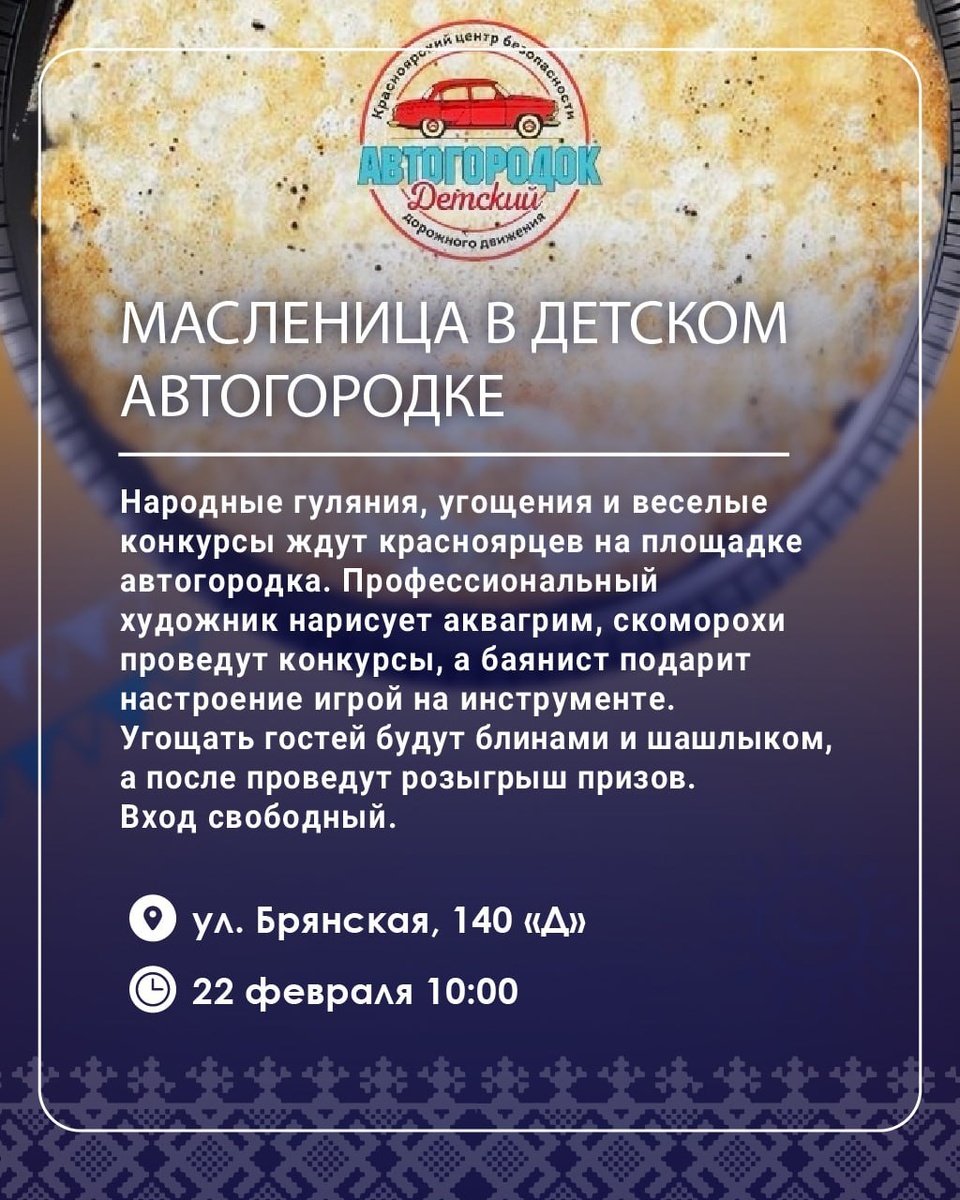 😊 «На Масленой повеселились, да блинком угостились» Готовимся к народным гуляниям – игры у Потешного столба, катания на санях, Взятие снежного городка, и конечно, блины. 😍 Отмечать праздник будут в разных форматах – от масштабных массовых мероприятий до уютных камерных встреч. Более 20 масленичных событий в Красноярске и за его пределами – в гиде ТВК 👈 ТВК