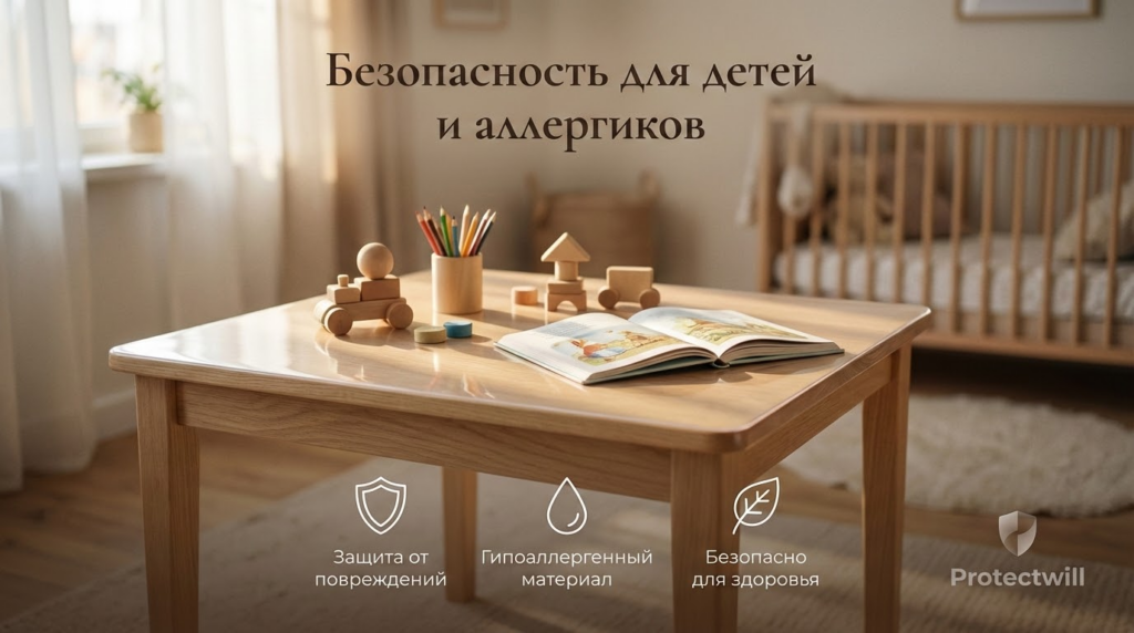 Защитная пленка на стол — это не просто способ избежать царапин. В доме, где есть дети или люди с повышенной чувствительностью к аллергенам, это инструмент создания безопасной среды. Вы убираете токсичный пластик, закрываете поры, где живут бактерии, и страхуетесь от разбитого стекла. И всё это — без ущерба для эстетики вашего интерьера.
