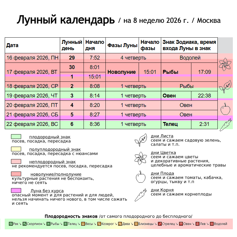 При посеве и посадке в эти дни растения растут очень быстро (Овен — спринтер на короткие дистанции), но получаются слабыми, плохо завязывают плоды. Всходы появляются быстро, но урожай будет средним и плохо coхраняемым, а также непригодным на семенные цели. Зато скороспелые овощи, в частности зеленные, растут хорошо.