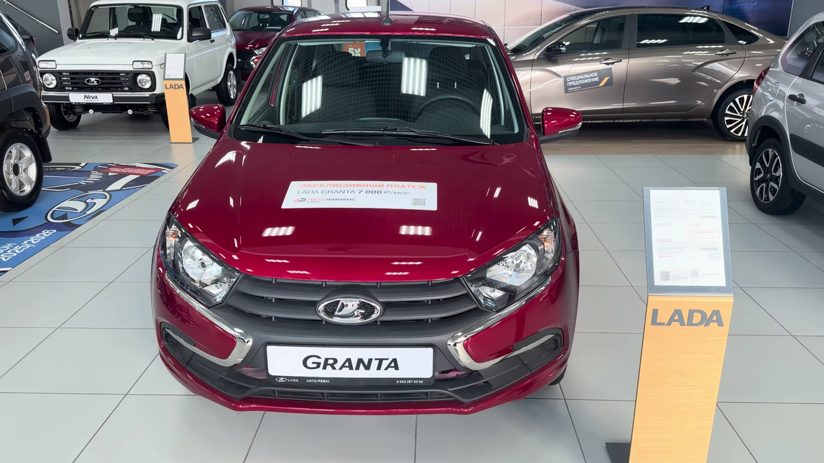 Первым делом мой взгляд упал на «народную кормилицу» - Lada Granta. Помните времена, когда мы возмущались, что она стоит 500-600 тысяч? Забудьте эти сладкие сны. Сейчас, в феврале 2026 года, за этот автомобиль просят совершенно другие деньги. Вот стоит в шоуруме обычная белая Гранта. Комплектация, судя по всему, далеко не самая богатая, но и не совсем пустая, так как есть кондиционер и два передних стеклоподъемника. И знаете, сколько за нее просят?