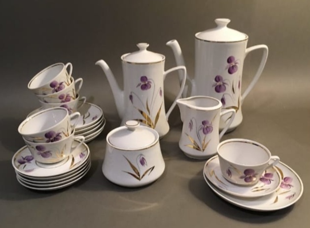 И пример сервиза с известной росписью. Ручных росписей немного, в основном деколи использовались для оформления.