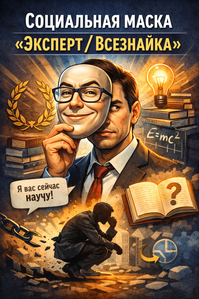 Социальная маска «Эксперт / Всезнайка» — это не про интеллект. Это про потребность в безопасности, признании и значимости.