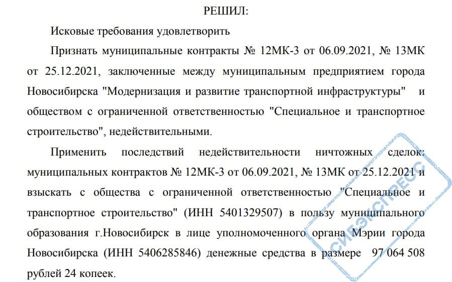 Прокуратура подала иск к муниципальному предприятию «Метро МИР» и ООО «Спецтрансстрой» о признании недействительными контрактов на строительство путей от трамвайного кольца на улице Волочаевской до автовокзала. Общая сумма договоров превысила 105 млн рублей, говорится на сайте госзакупок. Областная прокуратура установила, что были допущены «многочисленные нарушения при заключении и исполнении контрактов». Антимонопольная служба обнаружила «антиконкурентные» соглашения. «Подрядчиком исполнялись два практически идентичных муниципальных контракта, работы ни по одному из которых не выполнены до конца, несмотря на их полную оплату, — рассказали в пресс-службе прокуратуры. — Заказчик одновременно выступал субподрядчиком по выполнению ряда работ в рамках муниципальных контрактов. Наличие аффилированности между сторонами повлекло ограничение конкуренции при осуществлении закупок». Арбитражный суд постановил взыскать 97 млн рублей со «Спецтрансстроя» в пользу мэрии. Впрочем, предприятие и