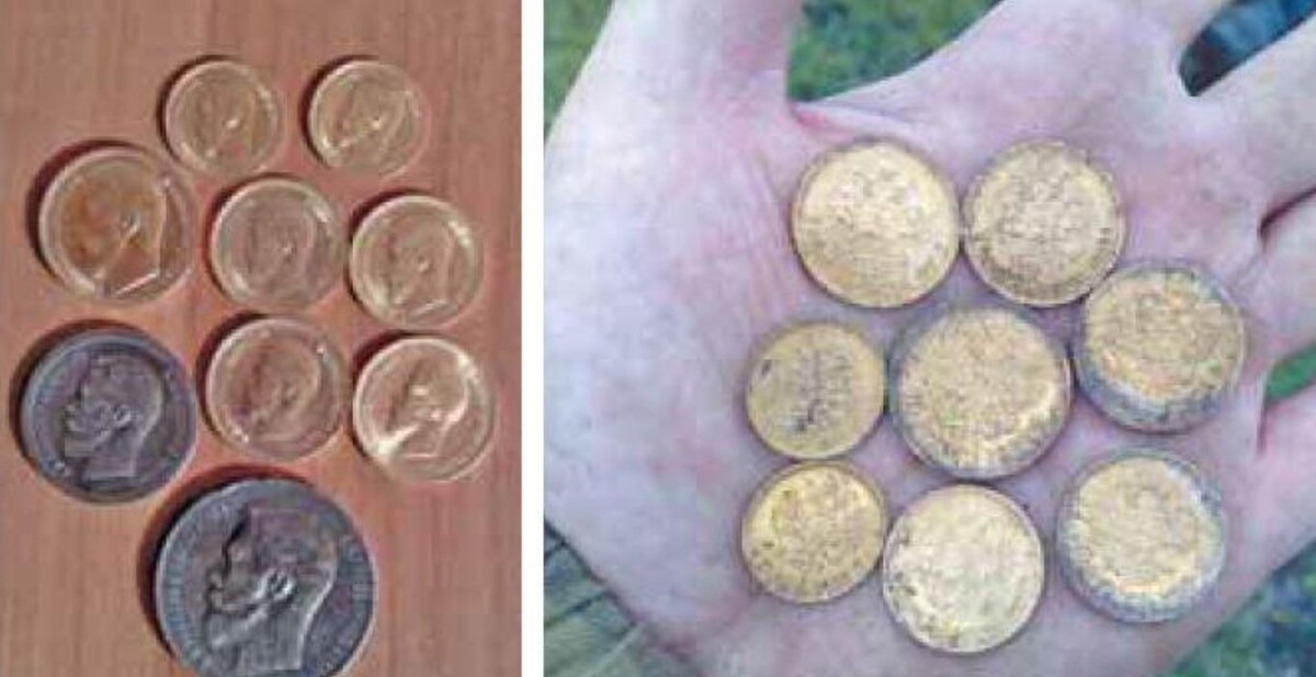 Поиски начинались непросто. На выбитой площадке кладоискатели находили лишь немногочисленные монеты раннего советского периода и фрагменты сбруи. Ситуация изменилась, когда один из мужчин наткнулся на полтинник времён Николая II. Находка, сделанная в огромной куче