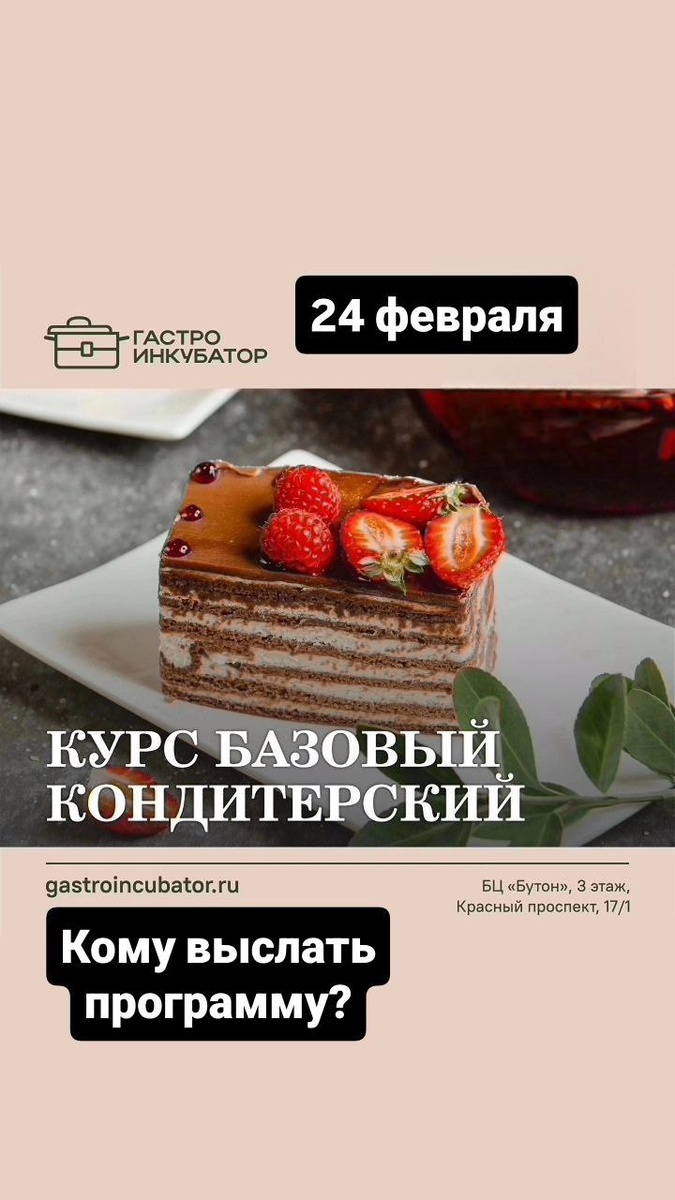 ! Записывайтесь! Следующий старт только через 3 месяца. 🎂 Хотите создавать восхитительные десерты, от которых гости будут в восторге? 🍰✨ Наш курс – ваш первый шаг в мир профессиональной кондитерки! ### 🔹 Что вас ждет? ✔Освоите основы – от идеального бисквита до изысканных кремов. ✔ Научитесь готовить как профи: меренговый рулет, брауни, капкейки, лимонный тарт, шоколадный фондан, десерт"Анна Павлова" и еще! ✔ Много практики под руководством опытных преподавателей. ### 🔹 Почему стоит записаться? ✅ Быстрый старт – уже после первого занятия испечёте свой первый десерт! ✅ Маленькие группы –индивидуальный подход к каждому. ✅ Уютная атмосфера и море вдохновения! 📅 Старт: 24 февраля 2026 ⏳ Количество мест ограничено –успевайте забронировать свое место! 📲 звоните прямо сейчас: 8 913 916 98 82