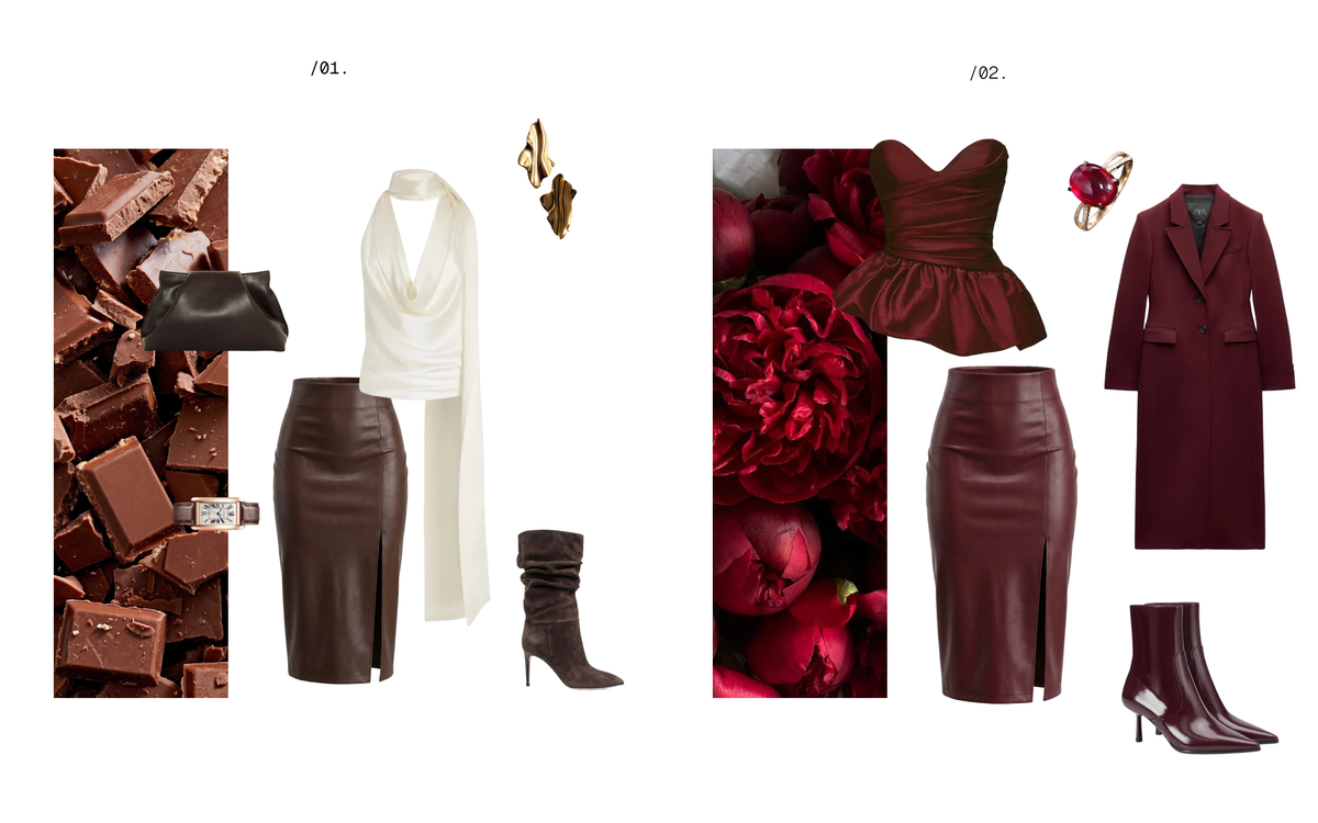 Выбор цвета — это всегда отражение внутреннего состояния. Поэтому VOROBYOVA BRAND предлагает кожаные юбки в оттенках, которые помогут вам чувствовать гармонию с собой и окружающим миром в зимне-весенний период. Глубокий шоколад остаётся стильным в переходный сезон. Этот тёплый коричневый оттенок выглядит мягче и уютнее классического чёрного, добавляя образу утончённость и спокойную роскошь. Юбка шоколадного цвета прекрасно сочетается с молочными водолазками, светло-топлёными свитерами, карамельными кардиганами и бежевыми аксессуарами для завершённого образа. Бордовый добавляет драматичность и глубину силуэту и особенно хорошо смотрится в переходный период. Идеально сочетается с чёрным трикотажем и кашемиром графитового оттенка. Такая юбка легко становится центральным акцентом образа и подчёркивает вкус своей обладательницы. В сочетании с ней подойдут светло-бежевые, серые и кремовые акценты. Необычный и модный оттенок переходного сезона. Горчичный задаёт стильный акцент, оставаясь сдер