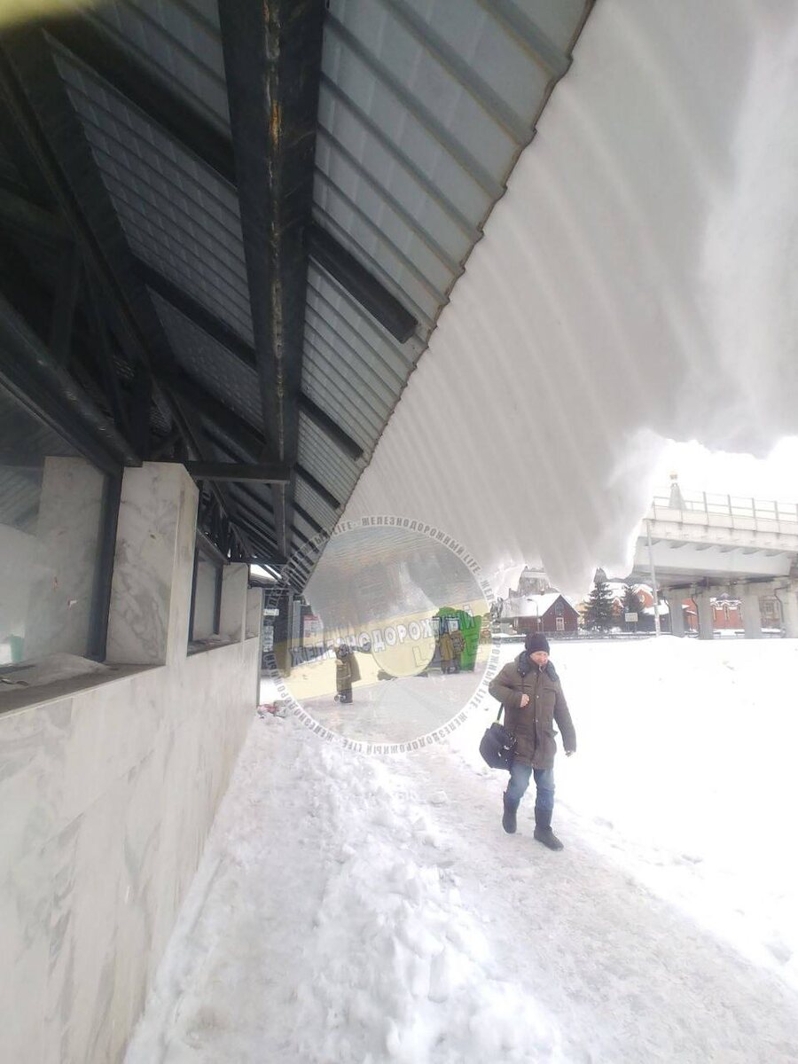 Метровый снежный свес на станции Салтыковка. 😨