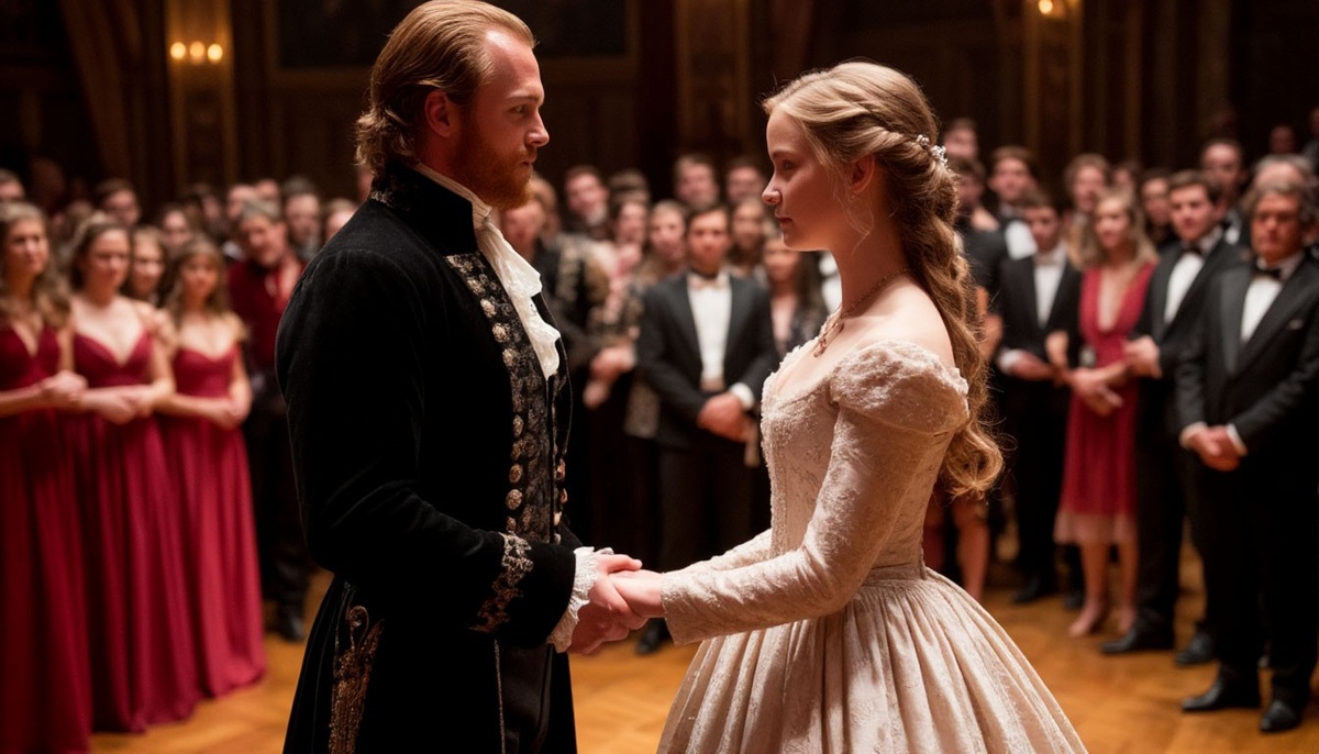 Музыка заиграла снова. Вальс сменился живой, задорной кадрилью, но для них двоих время словно остановилось. Они всё ещё стояли посреди зала, держась за руки, и толпа, точно повинуясь незримому приказу, обтекала их, создавая вокруг островок тишины.